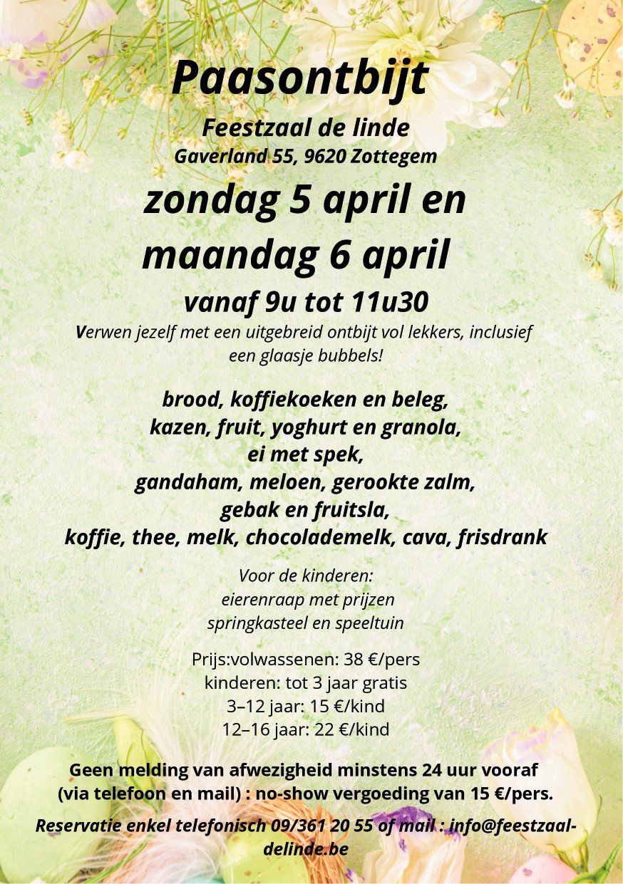 Paasontbijt op zondag 5 en maandag 6 april van 9u tot 11u30